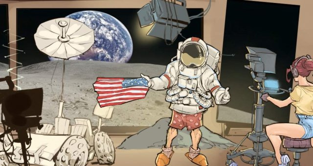 - Fan – Top right, filming a space movie near the astronaut.